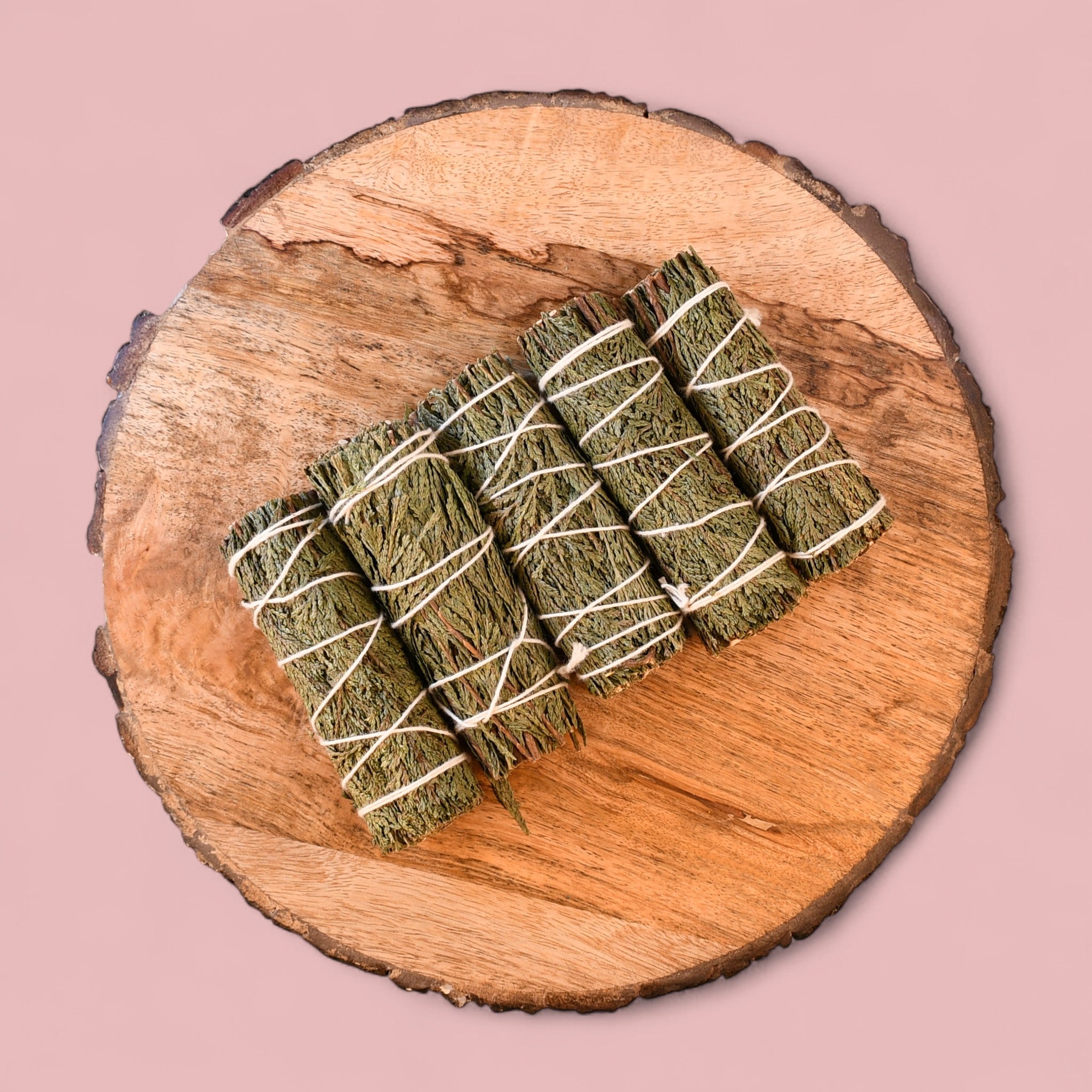 Welcome the supportive energy of nature into your space with our Cedar Smudge Sticks, hand-tied and crafted from sustainably harvested cedar. Known for its rich, woodsy fragrance and long-standing use in purification and protection rituals across various cultures, cedar offers a comforting and steadying presence during moments of reflection or cleansing.