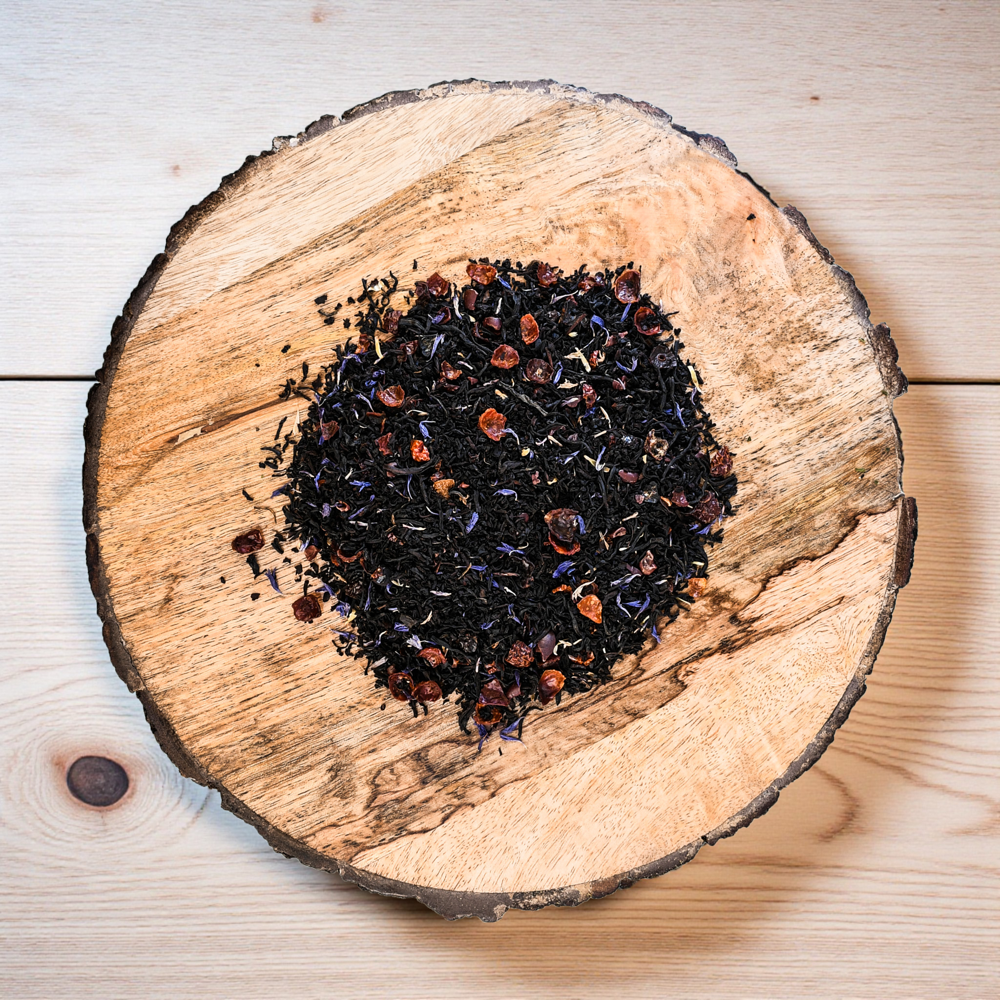 The Gilded Flame is a cozy story brewed in black tea — rich, spiced, and full of old-world charm. Inspired by fantasy taverns, timeless comforts, and whispered tales, this blend wraps you in warmth, memory, and slow-burning joy.